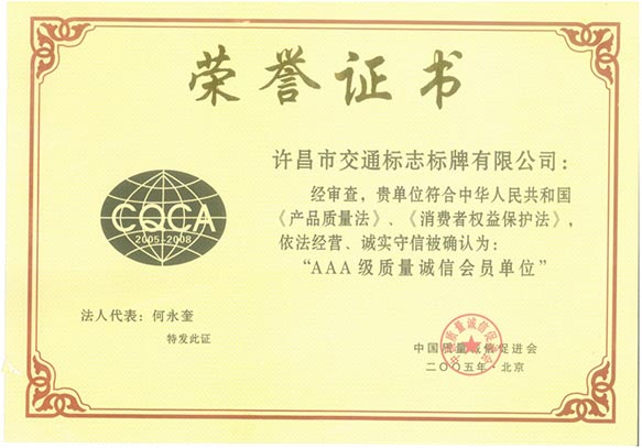 公司AAA級質(zhì)量誠信會(huì)員單位